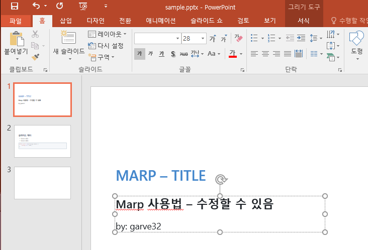 이러한 과정을 통해 PPT로 재 변환된 파일은 이제 수정이 가능하다.