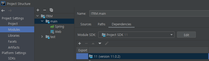 프로젝트의 SDK나 모듈 SDK, Language level 까지 전부 11로 설정되어 있어서 다른게 또 있나 살펴보던중