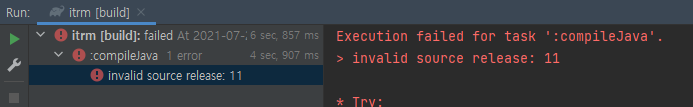 아래와 같이 invalid source release 오류가 발생했다.