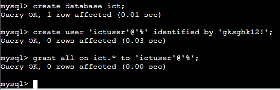 해당 데이터베이스에 사용자의 권한을 부여합니다.