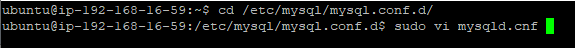 아래의 디렉토리로 이동하여 mysqld.conf 파일을 vi 에디터로 오픈합니다.