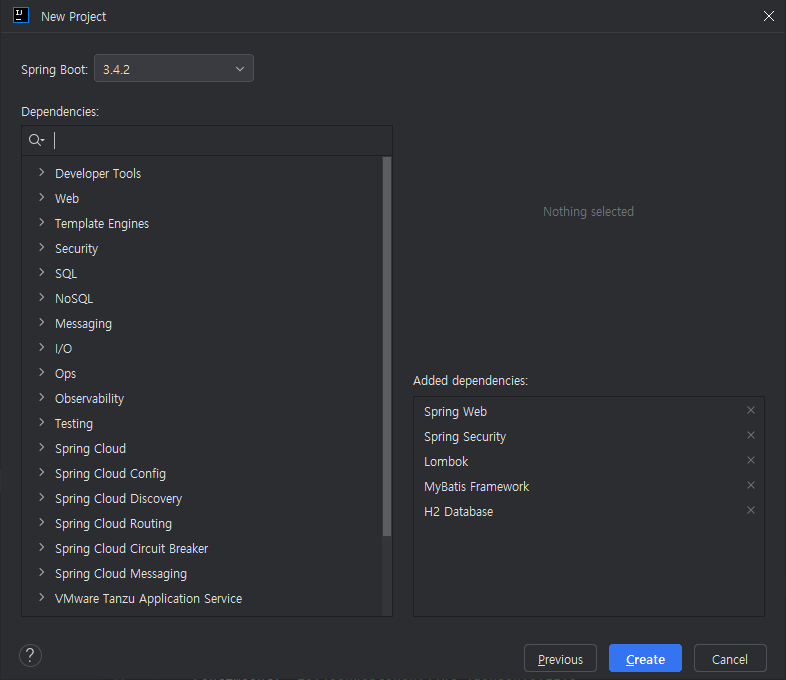 Dependencies 설정은 아래와 같이 심플하게 시작합니다.