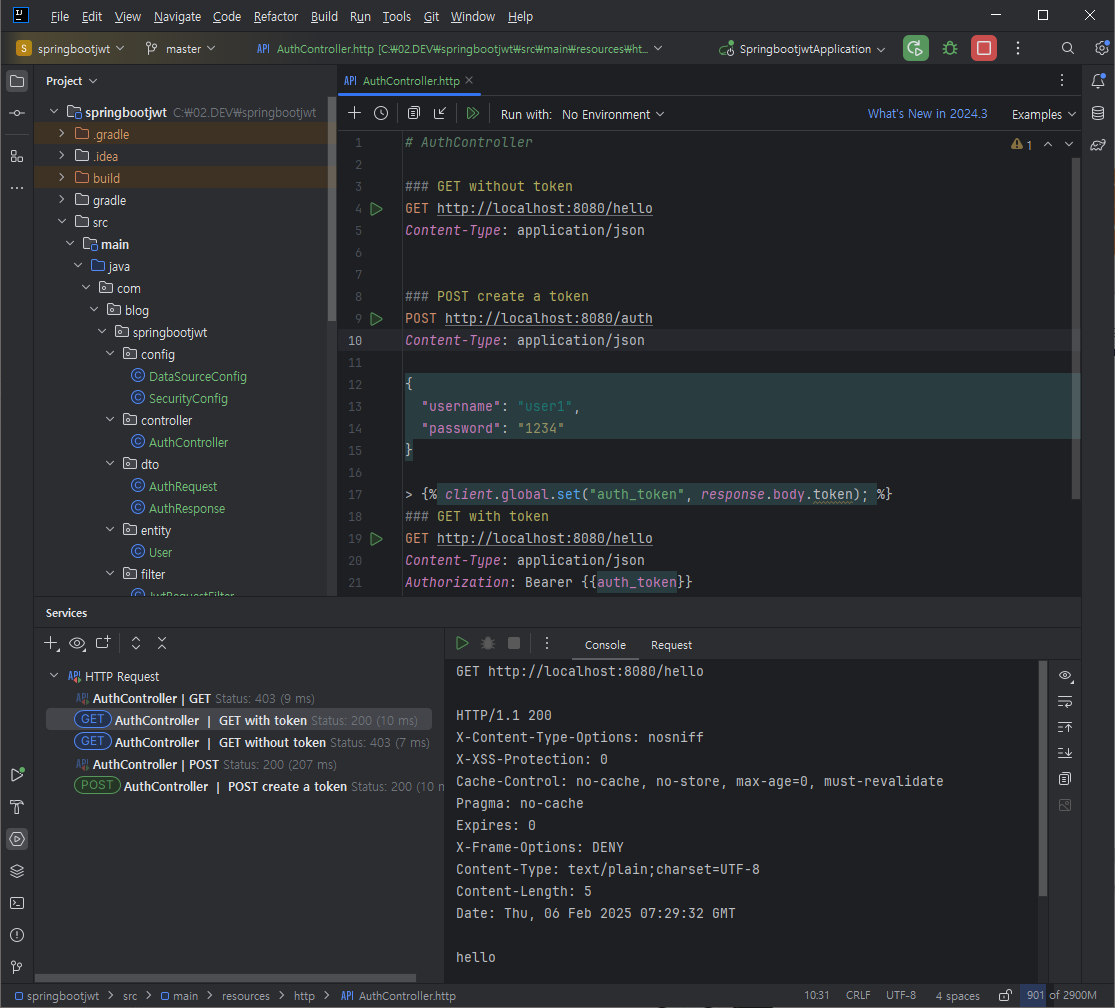 테스트는 intellij의 HTTP Client 플러그인을 사용해서 간단히 수행합니다.