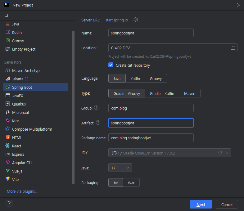 생성된 프로젝트에 추가로 JWT 관련 Dependencies를 추가 해줍니다.